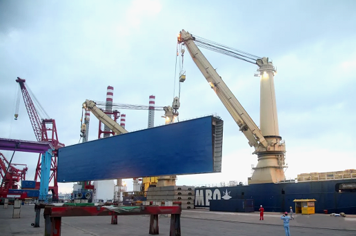海西重機(jī)從設(shè)計(jì)研發(fā)、生產(chǎn)管理、質(zhì)量控制、風(fēng)險(xiǎn)管控等方面高標(biāo)準(zhǔn)高質(zhì)量嚴(yán)格把控,對(duì)設(shè)備性能、安全性、使用維護(hù)等全面精心設(shè)計(jì)審核,對(duì)尺寸、精度、外觀、安裝接口位置等精準(zhǔn)控制,得到業(yè)主及駐廠意大利船級(jí)社監(jiān)理的認(rèn)可。考慮到用戶現(xiàn)場無大型起重設(shè)備,此次發(fā)運(yùn)采用具有2臺(tái)900噸克令吊的重吊船進(jìn)行作業(yè),滿足了所有吊裝和運(yùn)輸要求,不僅節(jié)約了項(xiàng)目成本,而且提高了裝卸船的工作效率。