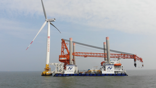 在該項目中,武漢船機為多功能海上施工自升平臺配套了1200噸全回轉浮式起重機、3400噸液壓插銷升降系統(tǒng)和適用于5-8米大尺度樁基的抱樁器系統(tǒng)等海上風電施工核心裝備,實現了海上施工核心裝備自主設計和國產化制造,形成了一整套海上風電施工集成方案,并獲得授權專利13項。該項目攻克了多項技術難題:一是形成了海上施工平臺起重系統(tǒng)輕量化設計方案,突破了吊機雙主鉤在浮態(tài)下防纏繞技術、機構速度控制力矩平衡技術等;二是提出了插銷升降系統(tǒng)智能控制策略,突破了大型復雜空間軸孔加工技術、基于彈性元件的重載系統(tǒng)能量波動抑制技術等;三是研制了GPS遠程打樁定位系統(tǒng),解決了打樁過程中樁垂直度自動檢測的問題。通過該項目實施,構建了健全暢通的研發(fā)設計、核心部件制造、系統(tǒng)集成與市場應用產業(yè)鏈,推動了我國海洋工程裝備創(chuàng)新發(fā)展。