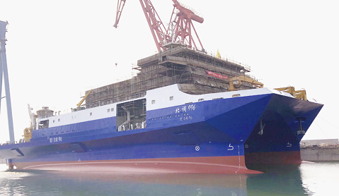 3月20日上午,在船東、船廠、設計院、船級社、監(jiān)理單位及主要設備供應商的見證下,國內(nèi)完全自主研制的深海裝備綜合試驗船順利出塢靠泊。