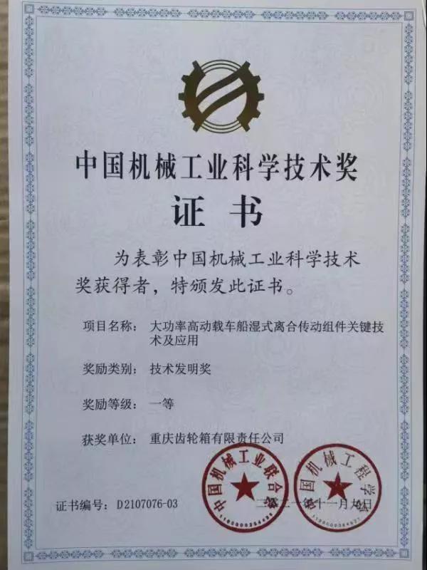 近日,中國機械工業(yè)聯(lián)合會公布2021年度中國機械工業(yè)科學(xué)技術(shù)獎獲獎名單,中國船舶集團(tuán)旗下中國動力子公司重齒公司參與完成的“大功率高動載車船濕式離合傳動組件關(guān)鍵技術(shù)及應(yīng)用”項目榮獲中國機械工業(yè)科學(xué)技術(shù)獎技術(shù)發(fā)明類一等獎,在全國僅十一位一等獎中斬獲一席。