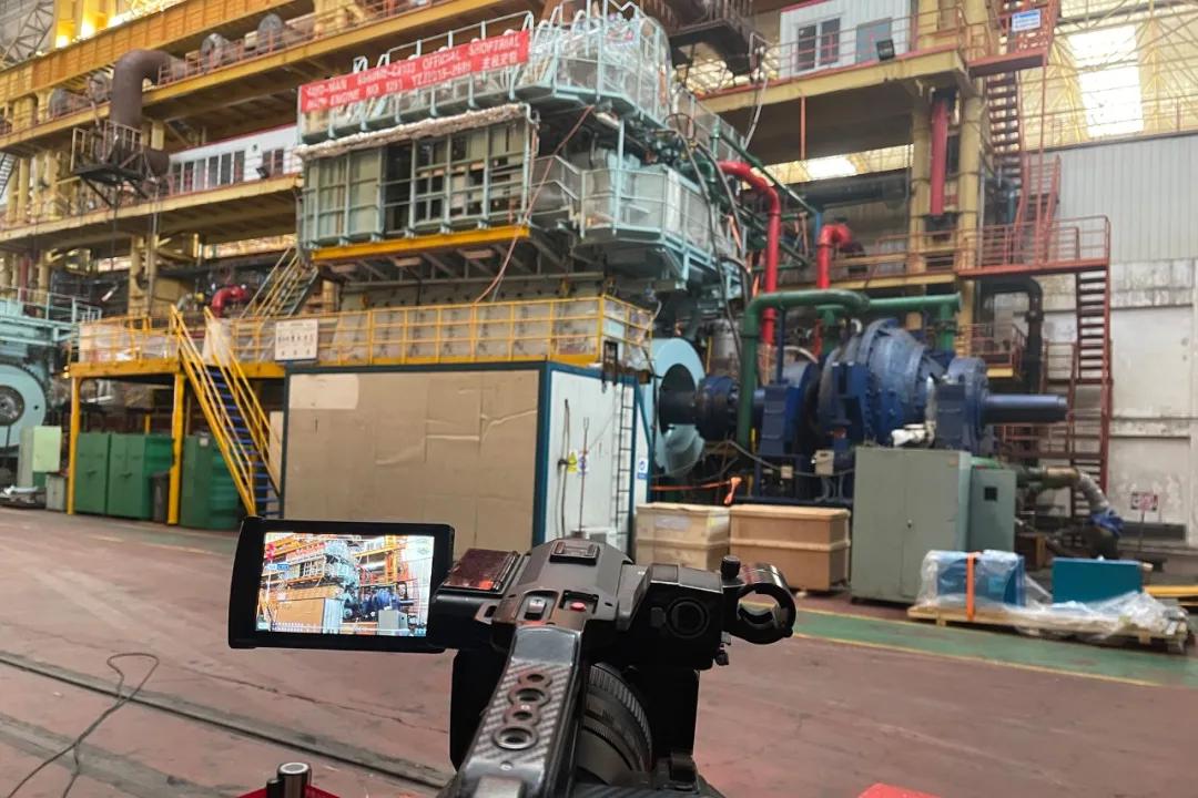 11月以來,新冠疫情再次來襲,大連市疫情防控形勢異常嚴(yán)峻,異地船東、船廠代表無法來公司參加交驗。經(jīng)過多方努力溝通,6S60MEC#103主機交驗前一天,公司建立了與希臘總部船東、船廠的溝通平臺,克服時差困難進行了三方視頻通話,但由于網(wǎng)絡(luò)穩(wěn)定性及影像的分辨率問題,遠(yuǎn)程視頻效果未達(dá)到船東要求。公司連夜研究方案,聘請專業(yè)團隊于主機交驗當(dāng)天提供高清視頻連線。同時,船東方委托的大連監(jiān)造船東參加現(xiàn)場FAT試驗,最終這臺主機順利交驗。