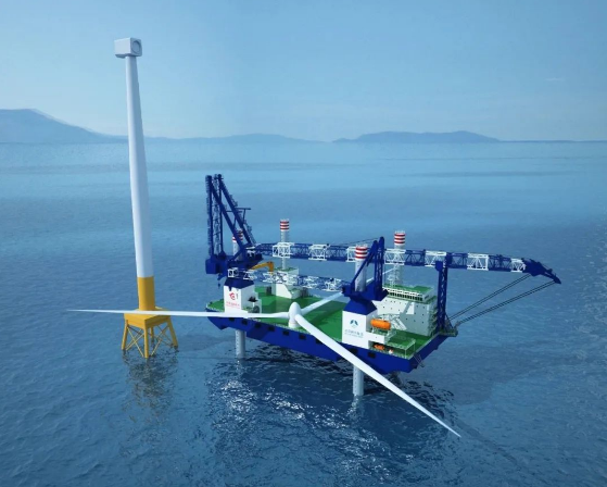華夏金租兩座1200噸自升式風電安裝平臺入級中國船級社(CCS),船體總長106.6米,型寬44.2米,型深8.45米,設計吃水5米,最大作業(yè)水深60米,最大吊裝高度185米,適用于無限航區(qū)航行和作業(yè)要求。該平臺采用流線型船艏,方型艉部,全焊接鋼質(zhì)船體,中部雙層底的駁船船型,由船體、4個圓柱樁腿、4套液壓插銷式升降系統(tǒng)等組成,艏部左舷設置1臺1200噸繞樁式主起重機,艉部左舷設置1臺300噸繞樁式輔起重機。該平臺為全電力驅(qū)動,具有輔助操縱、推進功能和DP-1動力定位能力,可實現(xiàn)從碼頭到海裝機位的一體化運輸?shù)跹b。