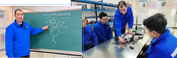 “一枝獨(dú)秀不是春,百花齊放春滿園?!弊鳛楣静裼蜋C(jī)裝配領(lǐng)域的帶頭人,劉曉剛始終堅(jiān)持:看我做,跟我學(xué),要求他人做到的,自己先做到。每每有新產(chǎn)品上線,劉曉剛都會(huì)熟悉研究產(chǎn)品知識(shí)與工藝,并結(jié)合日常裝配要點(diǎn)與疑難點(diǎn),做成幻燈片,對(duì)裝配線上的職工進(jìn)行培訓(xùn)。同時(shí),劉曉剛組織開(kāi)設(shè)以“筑牢基礎(chǔ)再提升”為主題的技能基礎(chǔ)班、以“技師大講堂”為主題的技能提升班,先后編寫(xiě)《柴油機(jī)裝試過(guò)程的清潔度控制》《TBD234柴油機(jī)故障分析與案例》等培訓(xùn)教材20多份,年培訓(xùn)課時(shí)30余個(gè),培訓(xùn)人數(shù)400余人次。近年來(lái),劉曉剛作為師傅,成功帶出8名高級(jí)技工、4名技師、2名高級(jí)技師、3名勞模,為公司培養(yǎng)了大批高素質(zhì)、高技能人才。