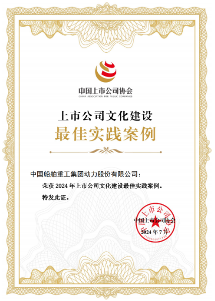 中國(guó)動(dòng)力結(jié)合自身企業(yè)文化建設(shè)特色,圍繞產(chǎn)業(yè)鏈協(xié)同下的文化創(chuàng)新與價(jià)值共創(chuàng)展開(kāi)論述,展示了公司在文化建設(shè)中依法合規(guī)、誠(chéng)實(shí)守信、穩(wěn)健經(jīng)營(yíng)、價(jià)值創(chuàng)造、回報(bào)社會(huì)等方面的具體舉措和創(chuàng)新做法,榮獲“2024上市公司文化建設(shè)最佳實(shí)踐案例”獎(jiǎng)。