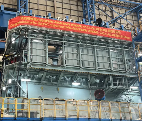 由中國船舶集團旗下中國動力子公司中船動力集團下屬中船三井研制的7G80ME-C10.5-GI-HPSCR雙燃料發(fā)動機就可以!