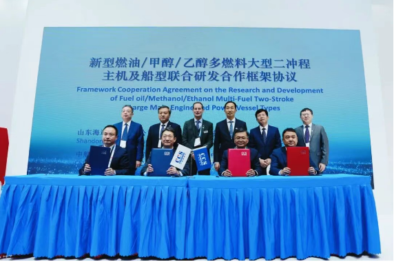 同時(shí),山東海運(yùn)股份有限公司、中國(guó)船級(jí)社、中船動(dòng)力(集團(tuán))有限公司、WinGD四家單位聯(lián)合簽署《新型燃油/甲醇/乙醇多燃料大型二沖程主機(jī)及船型研發(fā)聯(lián)合開(kāi)發(fā)合作協(xié)議》。助力我國(guó)“雙碳”目標(biāo)與可持續(xù)發(fā)展戰(zhàn)略落地,為“海洋強(qiáng)國(guó)”、“交通強(qiáng)國(guó)”建設(shè)筑牢技術(shù)與產(chǎn)業(yè)根基,助力支持全球海事的可持續(xù)發(fā)展。