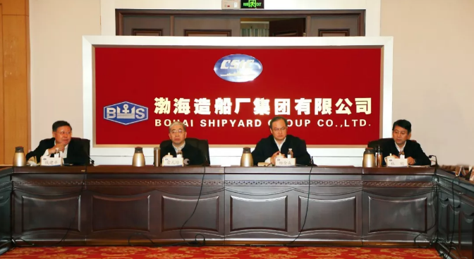????雷凡培、楊金成參觀了渤船集團史館和部分生產現場,觀看渤船集團宣傳片,詳細了解了渤船集團的發(fā)展歷程、廠區(qū)布局、生產能力、建造技術和未來規(guī)劃等方面的情況。在認真聽取有關情況匯報后,雷凡培、楊金成對渤船集團近年來的發(fā)展成績表示肯定,并就下一步發(fā)展提出要求。