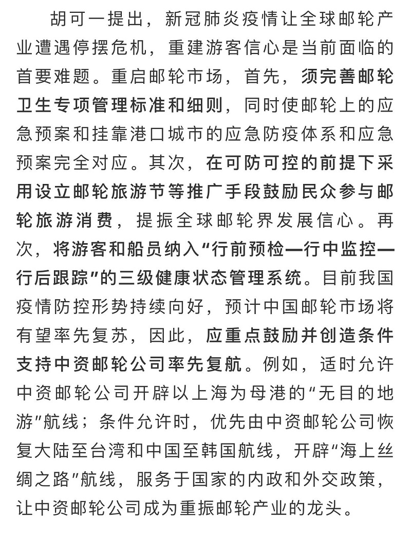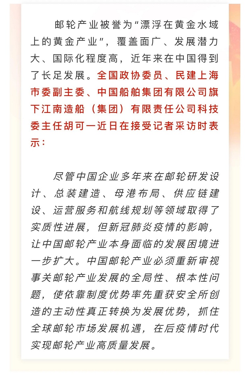 船舶看兩會| 全國政協(xié)委員胡可一:審視根本性問題,推動郵輪業(yè)高質(zhì)量發(fā)展