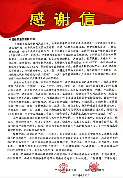 近日,中國船舶集團(tuán)收到了一封來自云南鶴慶的感謝信。從初識(shí)到現(xiàn)在,我們已在脫貧攻堅(jiān)的戰(zhàn)場上,攜手奮戰(zhàn)19載,如今正一鼓作氣攻克最后的貧困“堡壘”。
