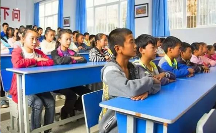 △ “中船春蕾班”學(xué)生在明亮的階梯教室上課