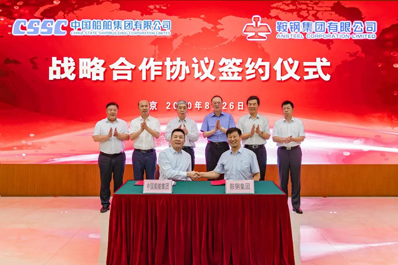 8月26日,中國(guó)船舶集團(tuán)有限公司與鞍鋼集團(tuán)有限公司在京簽署戰(zhàn)略合作協(xié)議。中國(guó)船舶集團(tuán)黨組書記、董事長(zhǎng)雷凡培,黨組成員、副總經(jīng)理馮永強(qiáng),鞍鋼集團(tuán)黨委書記、董事長(zhǎng)譚成旭,黨委副書記、總經(jīng)理戴志浩出席簽約儀式。中國(guó)船舶集團(tuán)黨組成員、副總經(jīng)理孫偉,鞍鋼集團(tuán)黨委常委、副總經(jīng)理王義棟分別代表雙方在協(xié)議上簽字。