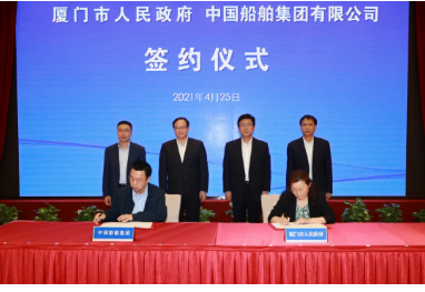 4月25日,中國(guó)船舶集團(tuán)與廈門(mén)市人民政府簽署了戰(zhàn)略合作協(xié)議。中國(guó)船舶集團(tuán)黨組副書(shū)記、總經(jīng)理?xiàng)罱鸪桑=ㄊ∥N?、廈門(mén)市委書(shū)記趙龍,廈門(mén)市委常委、常務(wù)副市長(zhǎng)黃文輝出席了簽署儀式。中國(guó)船舶集團(tuán)黨組成員、副總經(jīng)理盛紀(jì)綱,廈門(mén)市副市長(zhǎng)張志紅分別代表雙方在協(xié)議上簽字。簽約前,雙方圍繞進(jìn)一步加強(qiáng)交流合作、實(shí)現(xiàn)共同發(fā)展進(jìn)行了溝通交流。