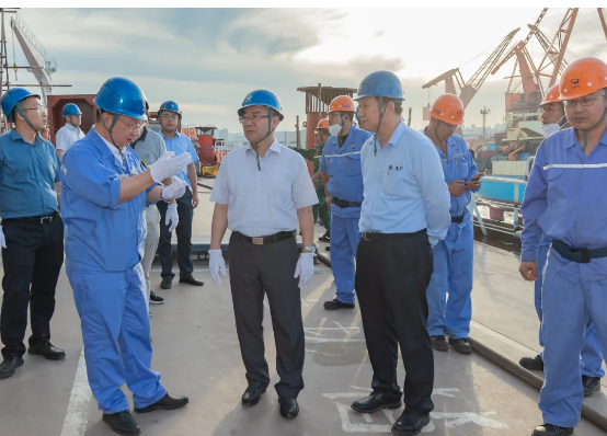 7月21日,工信部黨組成員、總工程師田玉龍到中國(guó)船舶集團(tuán)有限公司大連地區(qū)成員單位調(diào)研指導(dǎo)工作。田玉龍一行先后到中國(guó)船舶集團(tuán)第七六〇研究所、大連船舶重工集團(tuán)有限公司實(shí)地考察了有關(guān)試驗(yàn)場(chǎng)和在建船舶,聽(tīng)取了兩家單位整體發(fā)展情況特別是科技創(chuàng)新方面的工作匯報(bào),并對(duì)下一步工作提出要求。