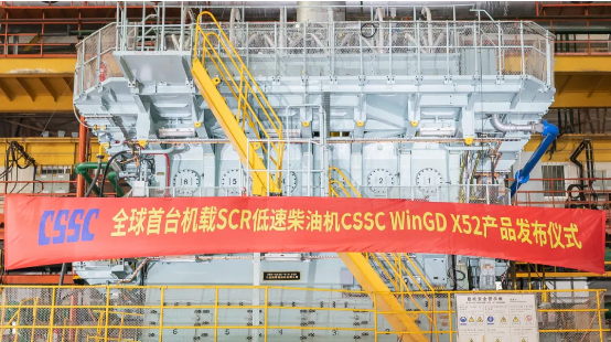 7月22日,由中國船舶集團(tuán)有限公司旗下中船動(dòng)力(集團(tuán))有限公司自主研發(fā)、大連船用柴油機(jī)有限公司建造的全球首臺(tái)機(jī)載SCR(選擇性催化還原系統(tǒng))船用低速機(jī)CSSC WinGD X52正式向全球發(fā)布。工信部黨組成員、總工程師田玉龍,中國船舶集團(tuán)黨組副書記、總經(jīng)理?xiàng)罱鸪沙鱿l(fā)布儀式并講話。國家相關(guān)部委、地方政府、船級(jí)社、航運(yùn)公司、造船企業(yè)等相關(guān)領(lǐng)導(dǎo)和專家出席發(fā)布儀式。