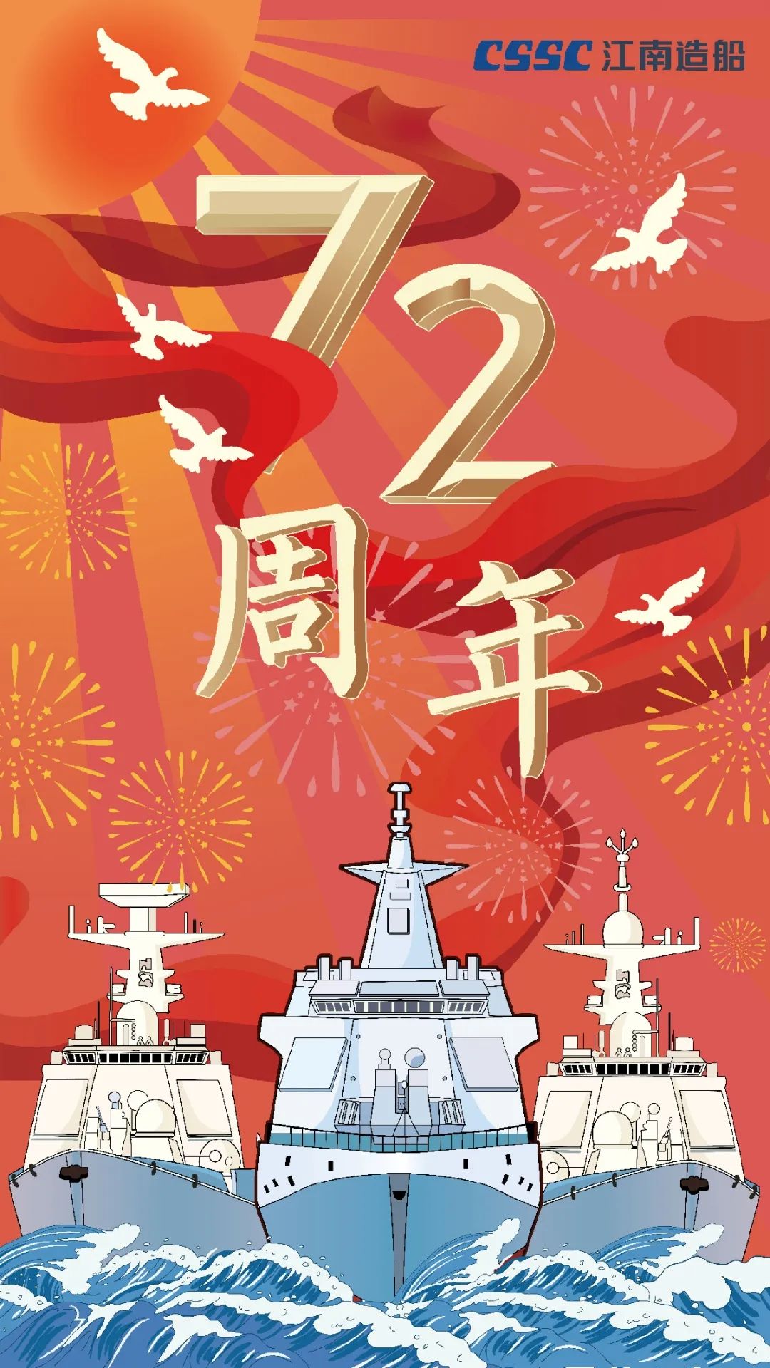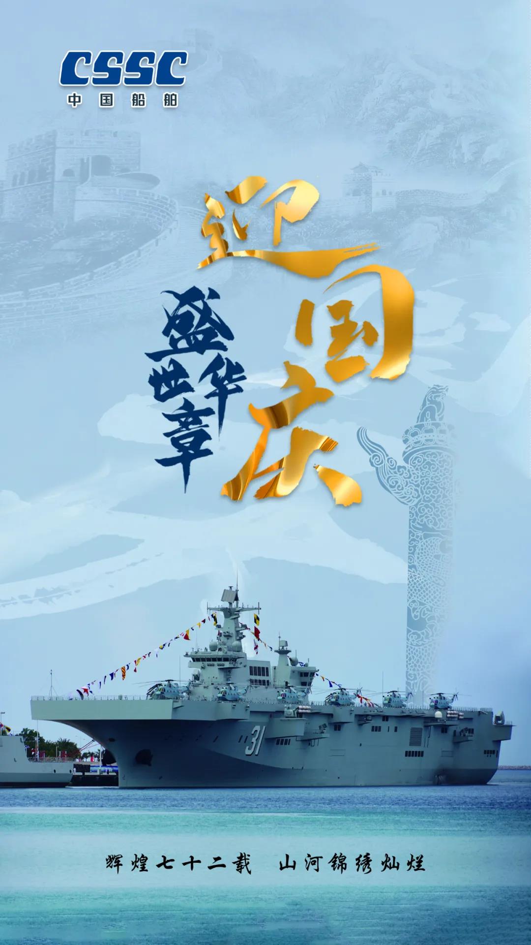 今天,我們迎來新中國72周年華誕。作為我國海軍裝備建設(shè)的主力軍,中國船舶大船集團(tuán)將不忘初心,牢記使命,堅定貫徹海洋強(qiáng)國、制造強(qiáng)國、科技強(qiáng)國國家戰(zhàn)略,聚焦主責(zé)主業(yè)、聚力興裝強(qiáng)軍,為實現(xiàn)中華民族偉大復(fù)興的中國夢而不懈奮斗。