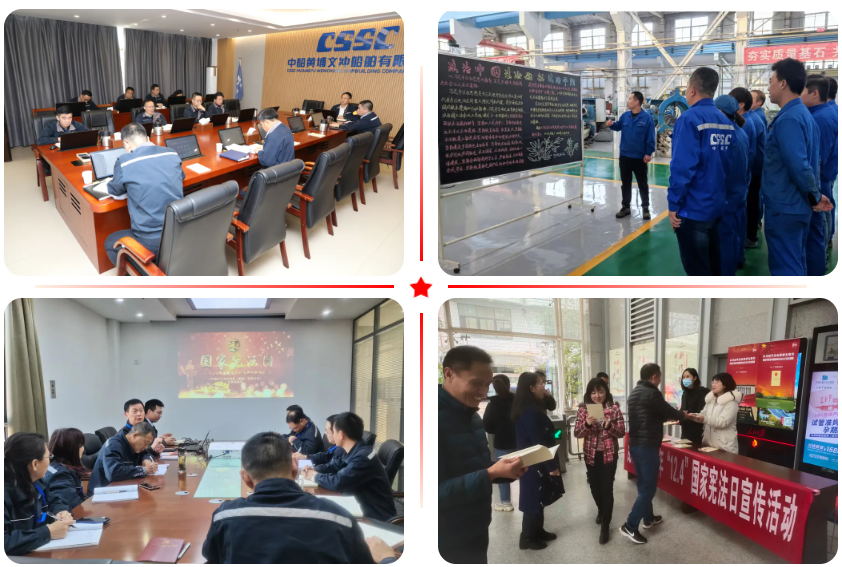 今年12月4日是第八個(gè)國(guó)家憲法日,11月29日~12月5日是第四個(gè)“憲法宣傳周”。中國(guó)船舶集團(tuán)總部和各成員單位以本次國(guó)家憲法日和“憲法宣傳周”為契機(jī),深入開(kāi)展了2021年“法治宣傳周”活動(dòng),在集團(tuán)上下掀起了尊法學(xué)法守法用法的熱潮,營(yíng)造了濃厚的法治氛圍。