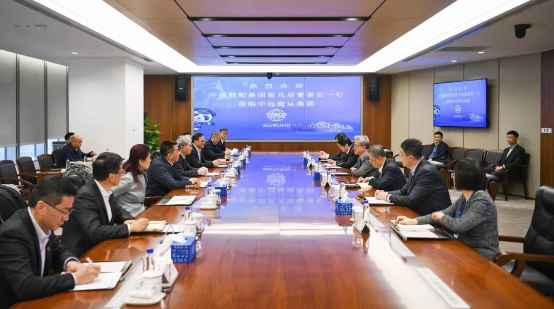 2月9日,中國(guó)船舶集團(tuán)有限公司黨組書(shū)記、董事長(zhǎng)雷凡培,黨組副書(shū)記、總經(jīng)理?xiàng)罱鸪梢恍懈爸羞h(yuǎn)海運(yùn)大廈拜會(huì)中國(guó)遠(yuǎn)洋海運(yùn)集團(tuán)有限公司黨組書(shū)記、董事長(zhǎng)萬(wàn)敏,黨組副書(shū)記、總經(jīng)理付剛峰。雙方互賀壬寅虎年新春,圍繞深入貫徹落實(shí)國(guó)家重大戰(zhàn)略,就進(jìn)一步加強(qiáng)綠色燃料技術(shù)研發(fā)應(yīng)用、船舶與航運(yùn)業(yè)全產(chǎn)業(yè)鏈構(gòu)建等領(lǐng)域的交流合作,攜手推動(dòng)我國(guó)航運(yùn)業(yè)和造船業(yè)高質(zhì)量發(fā)展進(jìn)行了深入探討并達(dá)成廣泛共識(shí)。中國(guó)船舶集團(tuán)黨組成員、副總經(jīng)理孫偉、盛紀(jì)綱,中遠(yuǎn)海運(yùn)集團(tuán)黨組成員、副總經(jīng)理、總會(huì)計(jì)師孫云飛參加會(huì)談。