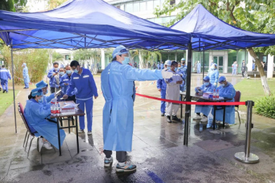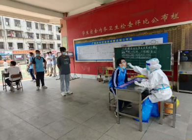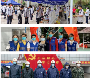 地處市區(qū)的廣州公司,迅速組建了一支以黨員為主的志愿者服務(wù)隊,助力所在社區(qū)(鶴園居委會)開展全員常規(guī)核酸檢測現(xiàn)場服務(wù)工作,以實際行動配合完成了6000多名居民核酸檢測任務(wù)。該公司職教事業(yè)部2所學(xué)校2000余名學(xué)生分轄荔灣、黃埔兩區(qū),學(xué)校教職工主動作為,積極配合醫(yī)護(hù)人員維護(hù)現(xiàn)場秩序、信息登記、查核健康碼等,順利完成2輪全員核酸檢測工作。