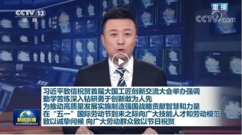 首屆大國工匠創(chuàng)新交流大會4月27日上午在京開幕。中共中央總書記、國家主席、中央軍委主席習(xí)近平發(fā)來賀信,向大會的舉辦表示熱烈的祝賀,并在“五一”國際勞動節(jié)到來之際,代表黨中央向廣大技能人才和勞動模范致以誠摯的問候,向廣大勞動群眾致以節(jié)日的祝賀。