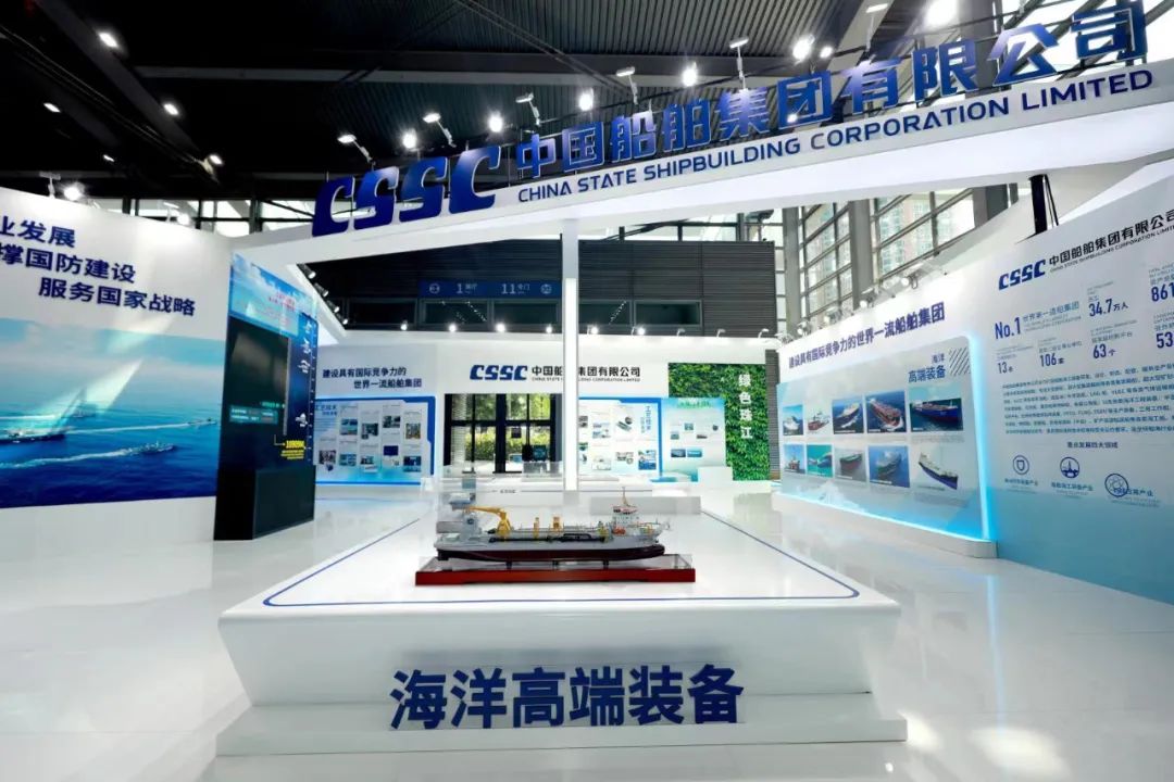 在大會的展示環(huán)節(jié),中國船舶集團(tuán)展臺通過集團(tuán)總體、海洋防務(wù)、海洋高端裝備、工藝技術(shù)創(chuàng)新發(fā)展、海洋經(jīng)濟(jì)新業(yè)態(tài)、工匠風(fēng)采、“奮斗者”號、綠色珠江八個板塊,分別展出了7500立方米液態(tài)二氧化碳運輸船、半潛式全自動現(xiàn)代化三文魚深海養(yǎng)殖裝備、合金鋼中間軸在大型油船上的首次應(yīng)用等55項創(chuàng)新成果,并展示了28位工匠代表的風(fēng)采。集團(tuán)公司展臺采用開放、通透的布局,突出中國船舶品牌元素,集中展示集團(tuán)公司立足新發(fā)展階段,貫徹新發(fā)展理念,在戰(zhàn)略重組后以高質(zhì)量發(fā)展為主題,壯大主業(yè)實業(yè)、加快推動船海產(chǎn)業(yè)向中高端轉(zhuǎn)型發(fā)展,以及大力弘揚軍工精神和勞模精神、勞動精神、工匠精神,強(qiáng)化自主創(chuàng)新的整體實力和在推動低碳環(huán)保、區(qū)域經(jīng)濟(jì)發(fā)展等方面的最新成果。集團(tuán)公司還通過本屆大會“互聯(lián)網(wǎng)+展會”模式開設(shè)的“云展會”,讓參觀者線上云游中國船舶展臺,擴(kuò)大企業(yè)品牌影響力。