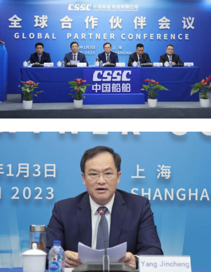 新年伊始,共話合作與發(fā)展。1月3日,中國船舶集團有限公司第三屆全球合作伙伴會議在上海舉行。中國船舶集團黨組副書記、總經(jīng)理楊金成出席會議作主旨講話,黨組成員、副總經(jīng)理孫偉在會上致歡迎辭。大會以全球視頻連線的方式進行,來自全球知名的船舶經(jīng)紀公司等合作伙伴代表應(yīng)邀出席會議,共同分析研判2023年全球船舶與海洋工程市場的發(fā)展趨勢,共同展望新一年的機遇與挑戰(zhàn),共同謀劃中國船舶工業(yè)未來的發(fā)展方向。