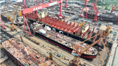 △ 廣船國際的船塢里,兩船出塢在做最后的準(zhǔn)備。