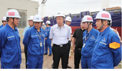 6月8日下午、9日上午,在龍穴基地調(diào)研期間,溫剛走進(jìn)造修船生產(chǎn)現(xiàn)場(chǎng),登上多型重點(diǎn)在建船舶,察看車間、船塢、船臺(tái)等生產(chǎn)區(qū)域,與企業(yè)班子成員深入交流,聽(tīng)取了黃埔文沖、廣船國(guó)際產(chǎn)業(yè)發(fā)展、深化改革、科技創(chuàng)新、人才隊(duì)伍建設(shè)、精益管理、黨的建設(shè)等有關(guān)情況的匯報(bào)。