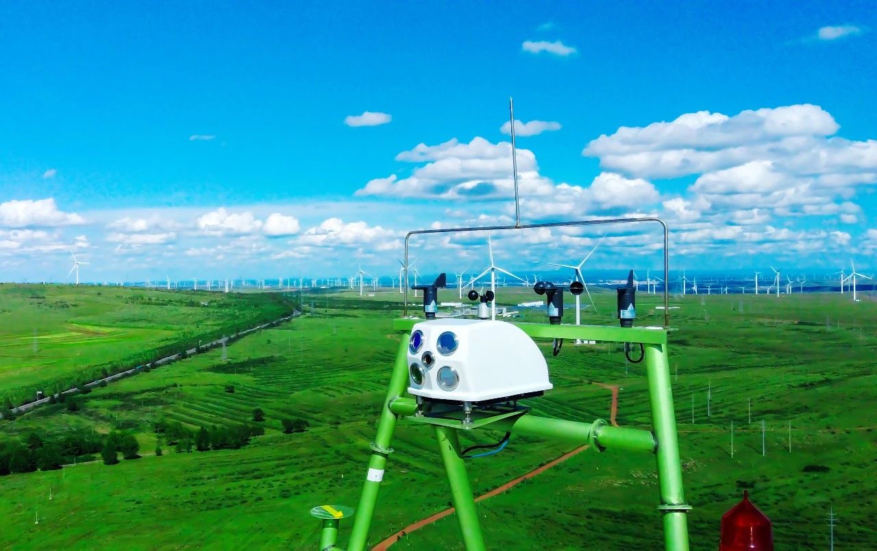 這是八院鵬力大氣海洋公司的全國(guó)產(chǎn)化測(cè)風(fēng)激光雷達(dá),它可測(cè)量風(fēng)速/風(fēng)向、湍流強(qiáng)度、風(fēng)切變等信息,是風(fēng)電領(lǐng)域的超強(qiáng)輔助。它就像“高高在上”的觀風(fēng)者,在蒼茫天空中等風(fēng)來(lái)。
