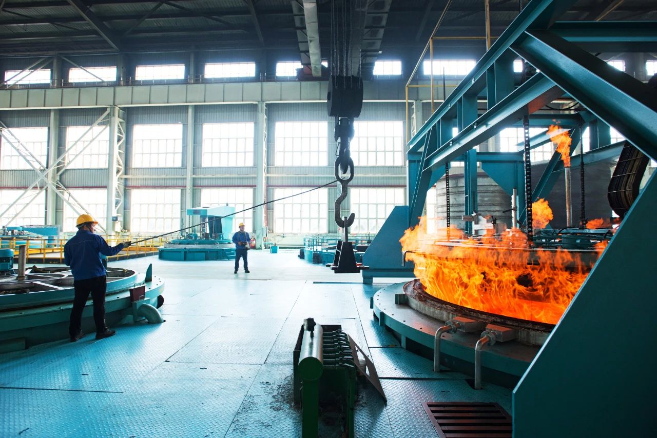 熱處理工人們面對(duì)著高達(dá)800攝氏度的高溫火焰,毫無(wú)懼色,依然穩(wěn)定地操作著設(shè)備。