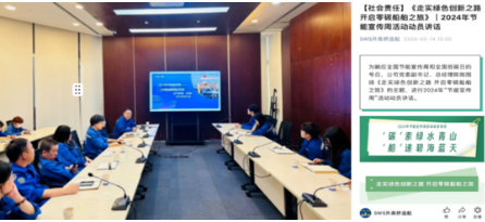 5月13日至19日是第34個全國節(jié)能宣傳周,中國船舶集團結合實際,印發(fā)了《中國船舶集團有限公司關于組織開展2024年全國節(jié)能宣傳周和全國低碳日活動的通知》,圍繞“走實綠色創(chuàng)新之路,開啟零碳船舶之旅”和“‘碳’索綠水青山,‘船’遞碧海藍天”主題,在全集團范圍內(nèi)開展了形式多樣的主題活動。