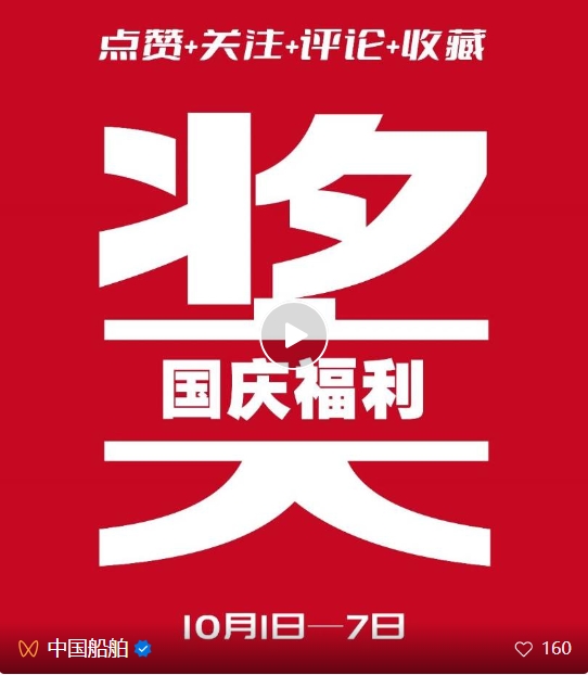 國慶7天樂,我們一起歡度國慶,中國船舶集團(tuán)新媒體平臺抽獎(jiǎng)啦!