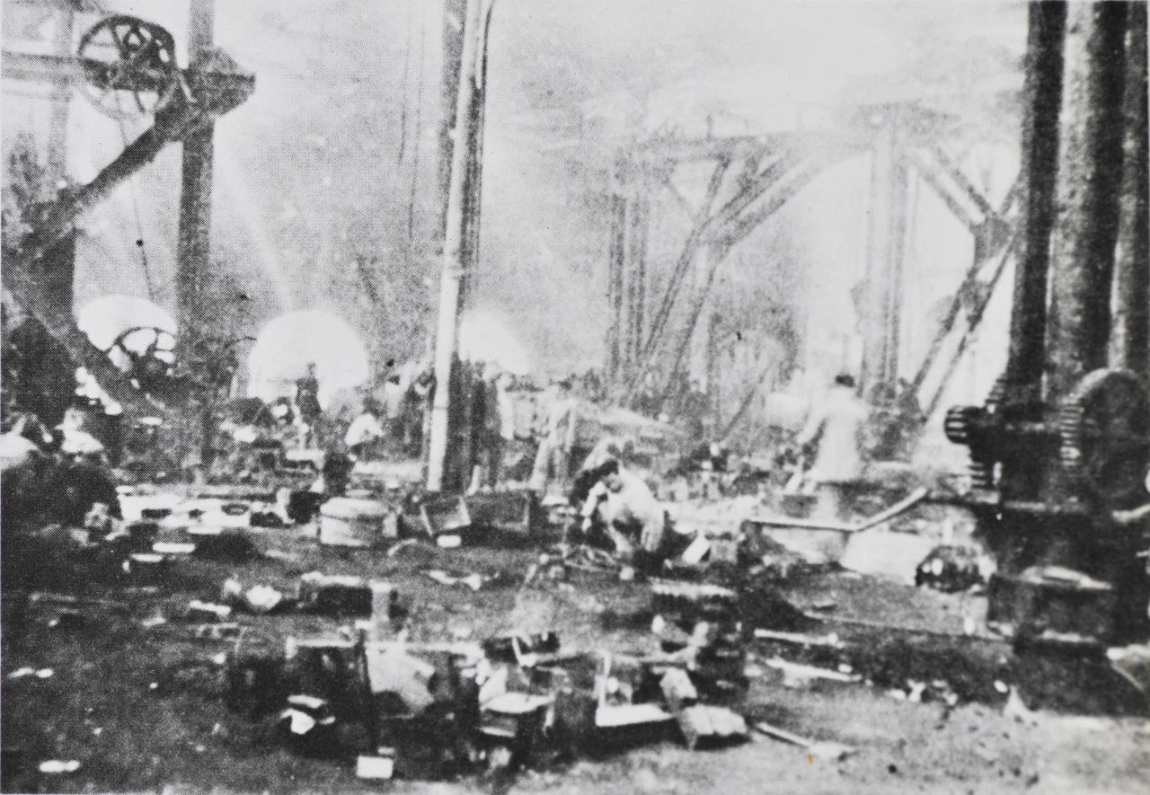1949年5月上海,雖然江南造船所經(jīng)歷了英勇的護(hù)廠斗爭,但此時的船塢、廠房、設(shè)備,均已遭受到嚴(yán)重的破壞。