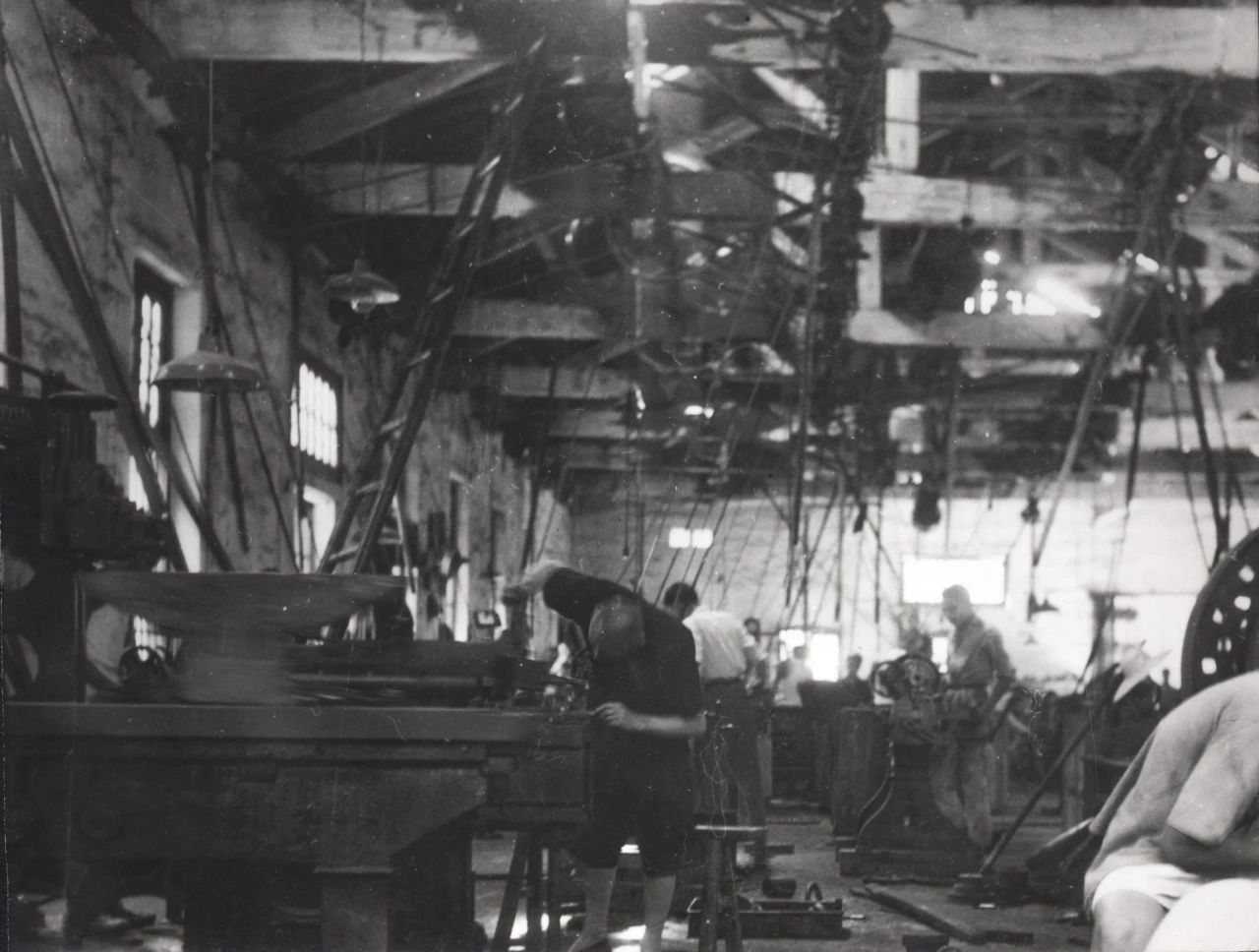 1934年武漢,上世紀(jì)30年代,武昌造船成立之初,工人們以手工作業(yè)“敲敲打打”形式開展修造船業(yè)務(wù)。修造的船只大多為100~300噸、鋼肋骨與木殼結(jié)構(gòu),僅有少量是鋼鉚接船體。建造的船只只能在長江上航行跑跑運輸。為了生存和救國,船廠還建造一些農(nóng)用機(jī)械器具、槍支,以輔助民生、支援抗日。