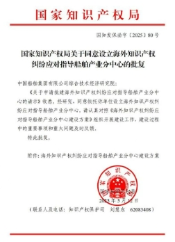 近日,由中船集團所屬中船綜合院(集團公司知識產(chǎn)權中心)申報的海外知識產(chǎn)權糾紛應對指導船舶產(chǎn)業(yè)分中心,獲得國家知識產(chǎn)權局批準設立。截至目前,該中心是國家知識產(chǎn)權局在全國設立的第五家產(chǎn)業(yè)分中心,也是船海產(chǎn)業(yè)領域唯一一家分中心。該中心的設立,為船舶企業(yè)“走出去”提供全鏈條知識產(chǎn)權保障,助力船舶產(chǎn)業(yè)在海外市場中更好應對知識產(chǎn)權挑戰(zhàn)。