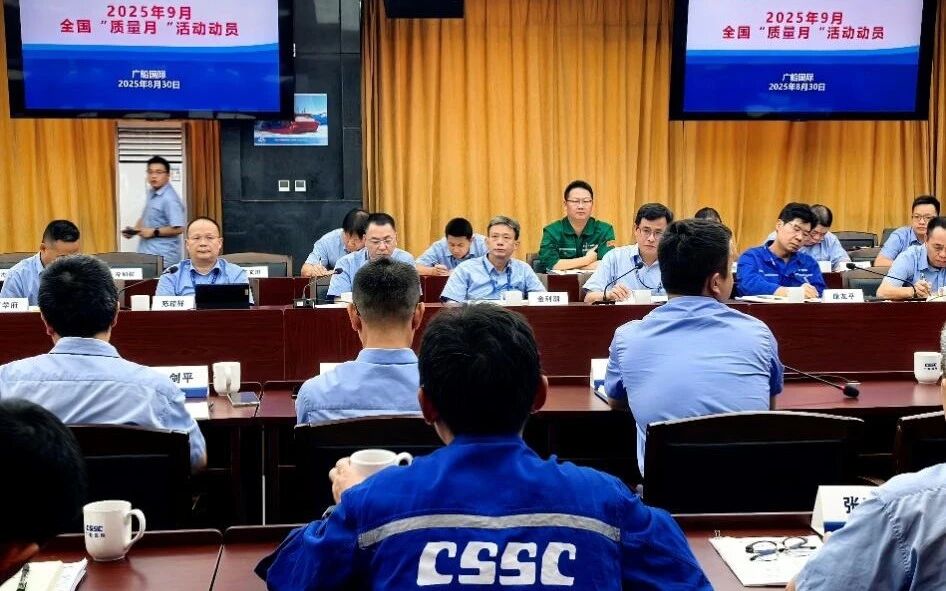 廣船國際召開2025年“質(zhì)量月”活動動員會,通過宣教結(jié)合、查改并舉的方式,從質(zhì)量意識教育培訓(xùn)、質(zhì)量提升專項行動、質(zhì)量文化建設(shè)三個方面,策劃部署了質(zhì)量門建設(shè)實施要求宣貫、“十五五”質(zhì)量專項規(guī)劃研討、“黨建+質(zhì)量”研討交流等23個活動項目,持續(xù)優(yōu)化質(zhì)量管理體系建設(shè),深入推進(jìn)精細(xì)化質(zhì)量管理提升。