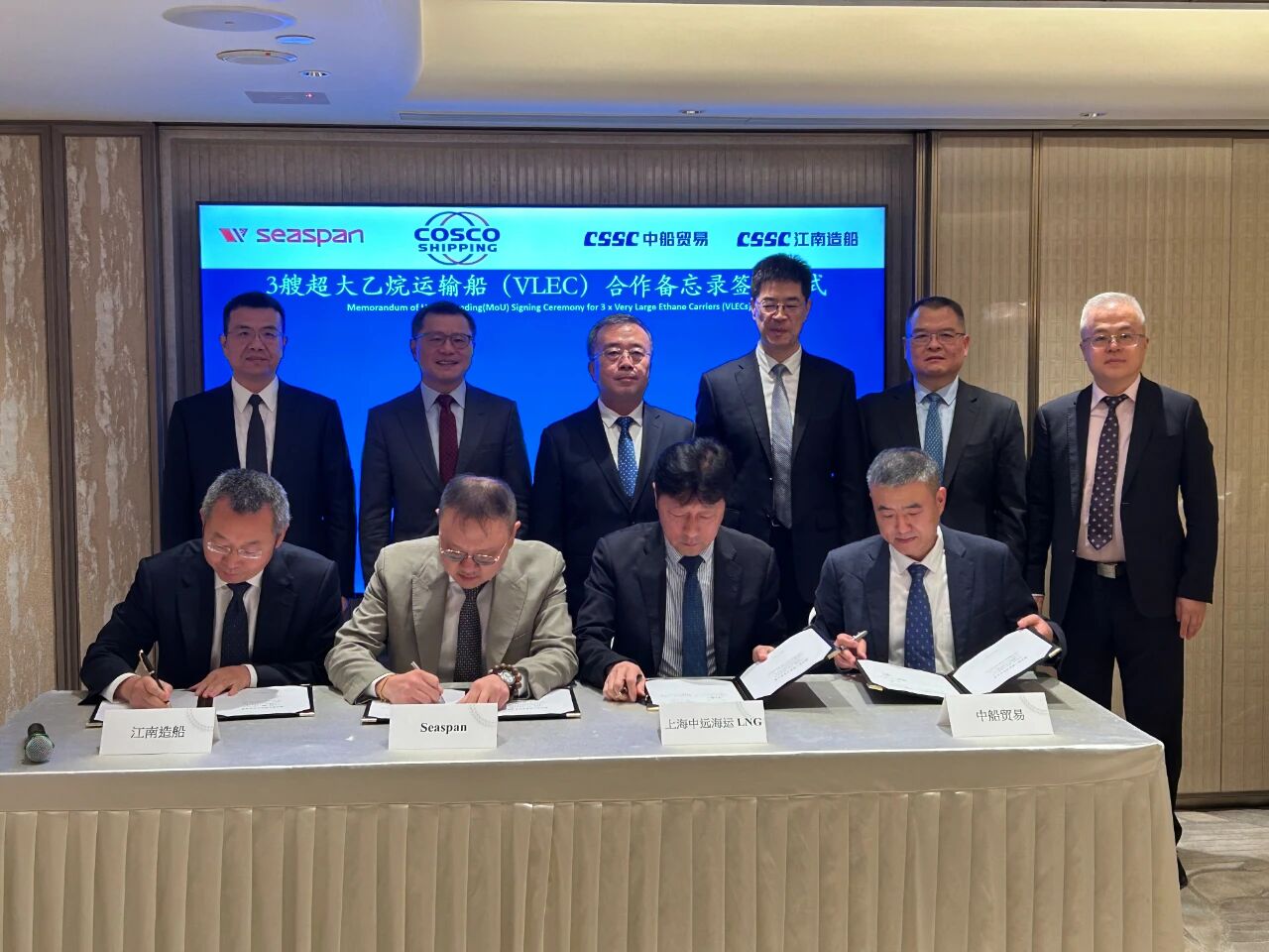 王國強(qiáng)同時見證了中船集團(tuán)與中旅集團(tuán)簽署戰(zhàn)略合作協(xié)議,中船集團(tuán)旗下江南造船聯(lián)合中船貿(mào)易與Seaspan、上海中遠(yuǎn)海運LNG簽署超大乙烷運輸船(VLEC)合作備忘錄;與相關(guān)中央企業(yè)舉行會談并簽署戰(zhàn)略合作協(xié)議。